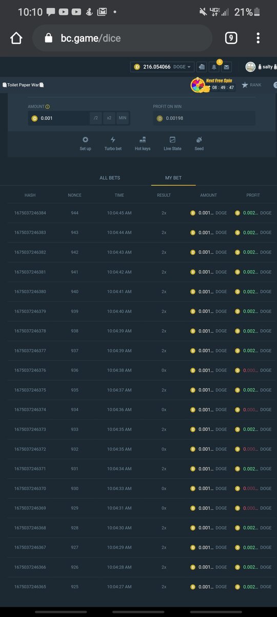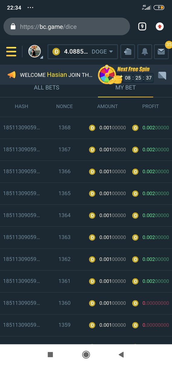 2️⃣. 8 corresponding HASH should also be sent along.(https://bcsnproject.github.io/bcgame-roll/?serverSeed= [your game hash])