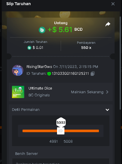 Moderator Giandreas Posted July 11, 2023 Moderator Share Posted July 11, 2023 Read Carefully Before Start To Hunt Forum Daily Challenges #293 Ultimate DiceHunt : Win the highest pay out Min Payout requirement 20x Min Level 4️Duration Starting : Now End time : 23.59 UTC Time How to Join? Make screenshot + paste your bet link + UID or Profile link Any coin, with min bet 0.01 USD is allowed (jb/bb/bcl not allowed)Reward Prizes 1st Place.....$7 BCD 2nd Place.....$5 BCD 3rd Place.....$4 BCD 4th Place.....$3 BCD 5th Place.....$2 BCD 🏵 Winners will be announcing next day after Roll Point! 1 Link to comment Share on other sites More sharing options...