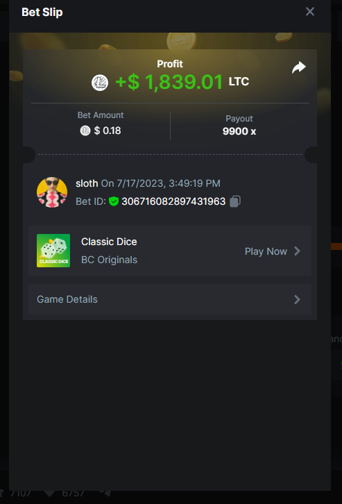 πŸ₯‡1st place . . . .Β  7$ BCDΒ  - sloth - 9900xΒ  1839