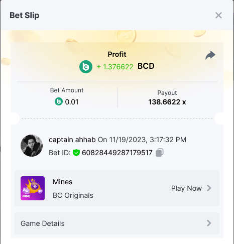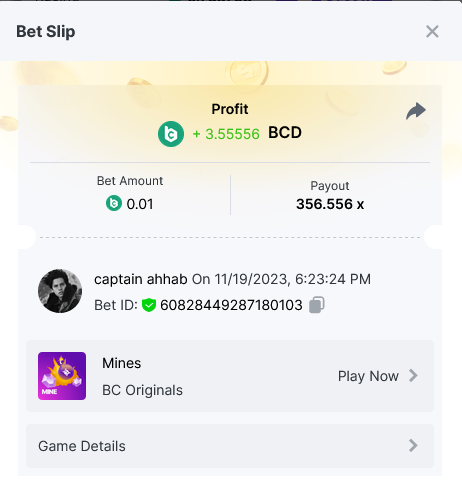 Moderator Giandreas Posted November 19, 2023 Moderator Share Posted November 19, 2023 Read Carefully Before Start To Hunt Forum Daily Challenges #423Hunt : Mines Win the highest pay out Min Payout : 50 Min Level 4 ️Duration Starting : Now End time : 23.59 UTC Time How to Join? Make screenshot + paste your bet link + UID or Profile link Any coin, with min bet 0.01 USD is allowed (jb/bb/bcl not allowed) Reward Prizes 1st Place.....$7 BCD 2nd Place.....$5 BCD 3rd Place.....$4 BCD 4th Place.....$3 BCD 5th Place.....$2 BCD 🏵 Winners will be announcing next day after Roll Point! 1 Link to comment Share on other sites More sharing options...