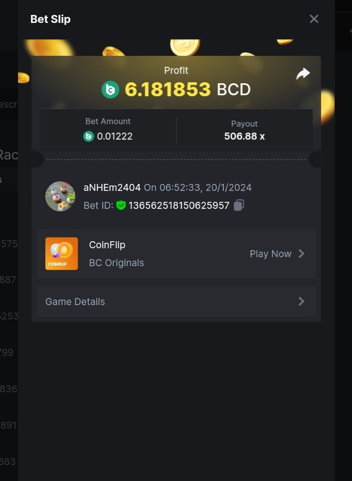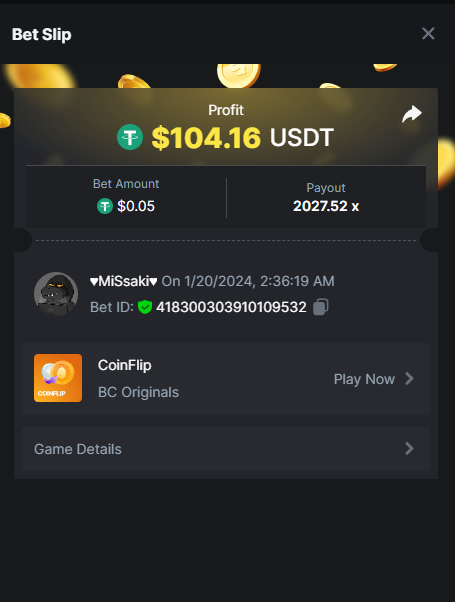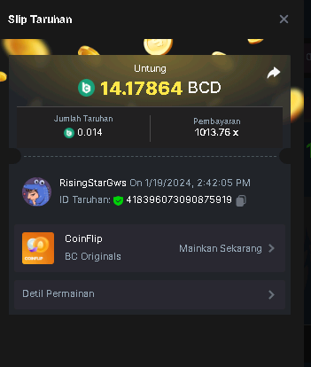 Moderator Giandreas Posted January 19, 2024 Moderator Share Posted January 19, 2024 Read Carefully Before Start To Hunt Forum Daily Challenges #484Hunt : CoinFlip Win the highest pay out Min Payout : series 6 Min Level 10️Duration Starting : Now End time : 23.59 UTC Time How to Join? Make screenshot + paste your bet link + UID or Profile link Any coin, with min bet 0.01 USD is allowed (jb/bb/bcl not allowed)Reward Prizes 1st Place.....$7 BCD 2nd Place.....$5 BCD 3rd Place.....$4 BCD 4th Place.....$3 BCD 5th Place.....$2 BCD 🏵 Winners will be announcing next day after Roll Point! Link to comment Share on other sites More sharing options...