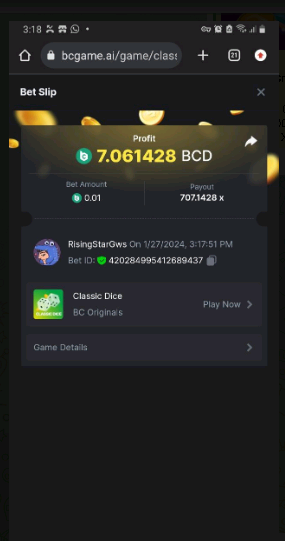 Moderator Giandreas Posted January 27, 2024 Moderator Share Posted January 27, 2024 Read Carefully Before Start To Hunt Forum Daily Challenges #492Hunt : Classic dice Win the highest pay out Min Payout : x20 Min Level 10 ️Duration Starting : Now End time : 23.59 UTC Time How to Join? Make screenshot + paste your bet link + UID or Profile link Any coin, with min bet 0.01 USD is allowed (jb/bb/bcl not allowed) Reward Prizes 1st Place.....$7 BCD 2nd Place.....$5 BCD 3rd Place.....$4 BCD 4th Place.....$3 BCD 5th Place.....$2 BCD 🏵 Winners will be announcing next day after Roll Point! Link to comment Share on other sites More sharing options...