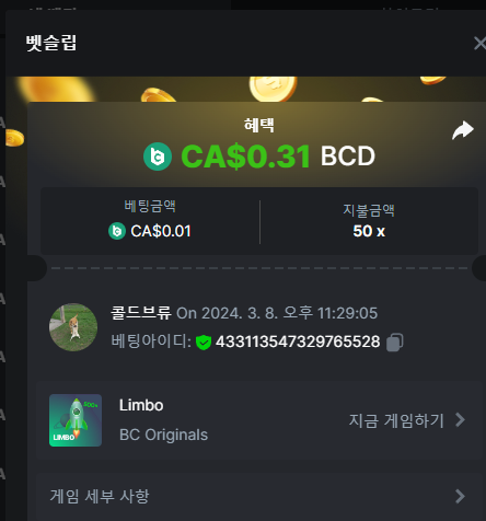 Moderator Giandreas Posted March 9, 2024 Moderator Share Posted March 9, 2024 Read Carefully Before Start To Hunt Forum Daily Challenges #534Hunt : Limbo Win the highest pay out Min Payout : 50x Min Level 10 ️Duration Starting : Now End time : 23.59 UTC Time How to Join? Make screenshot + paste your bet link + UID or Profile link Any coin, with min bet 0.01 USD is allowed (jb/bb/bcl not allowed) Reward Prizes 1st Place.....$7 BCD 2nd Place.....$5 BCD 3rd Place.....$4 BCD 4th Place.....$3 BCD 5th Place.....$2 BCD 🏵 Winners will be announcing next day after Roll Point! 1 Link to comment Share on other sites More sharing options...