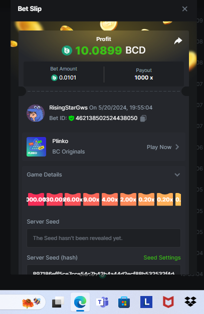 4th place . . . .RisingStarGws 1000 x 10.08 . . . .3$ BCD
