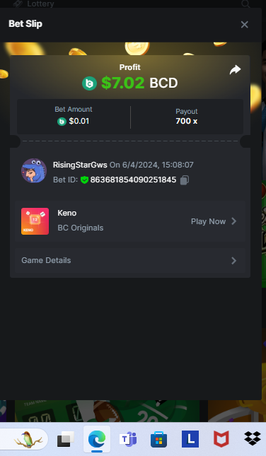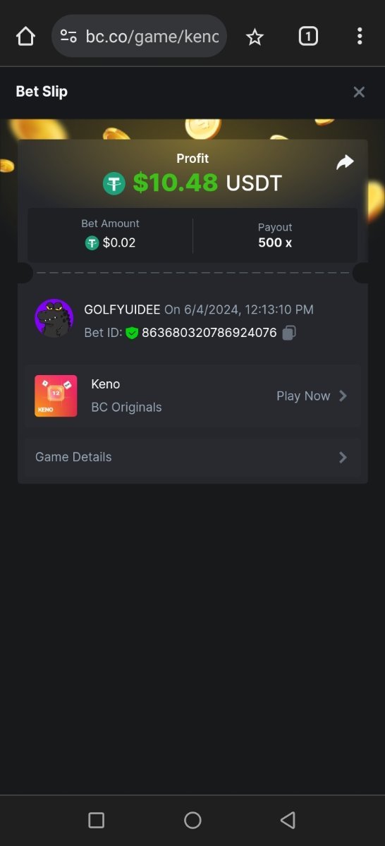3rd place . . . .GOLFYUIDEE   500 x 10.48 . . . .4$ BCD